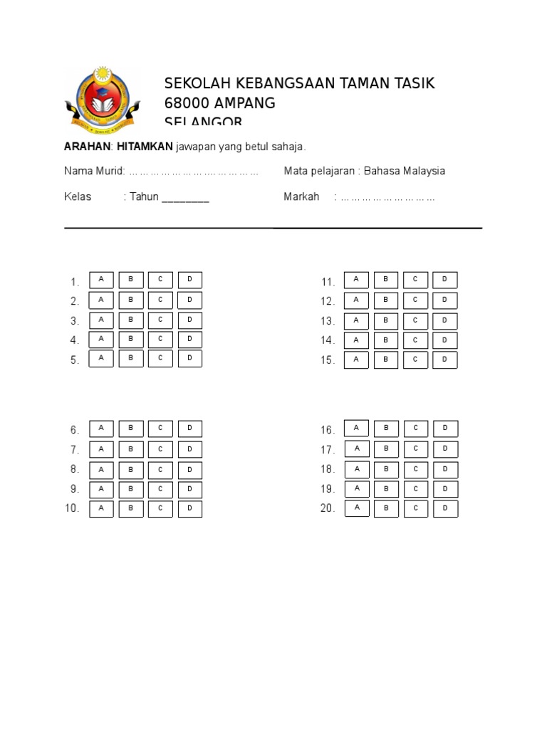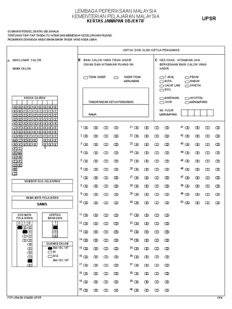 Kertas Jawapan Objektif Upsr Mariodsxz